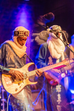 Hailing from Agadez, Niger, Etran de L’Aïr channels the electric heartbeat of the Sahara. Their sound — a hypnotic fusion of Tuareg guitar rock and desert blues — reverberates with dust, heat, and resilience. It’s community music: born under open skies, powered by shared joy, and carried by a groove that transcends borders. On stage, they transform tradition into momentum — pure motion and melody in human form.